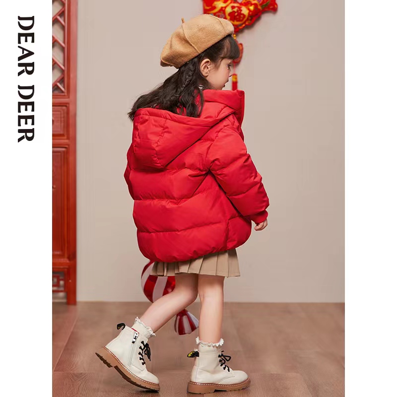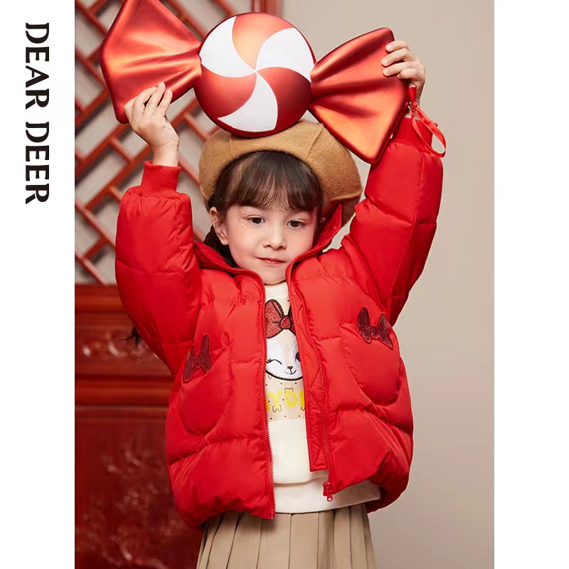 >>迪迪鹿小麋鹿短款连帽羽绒服