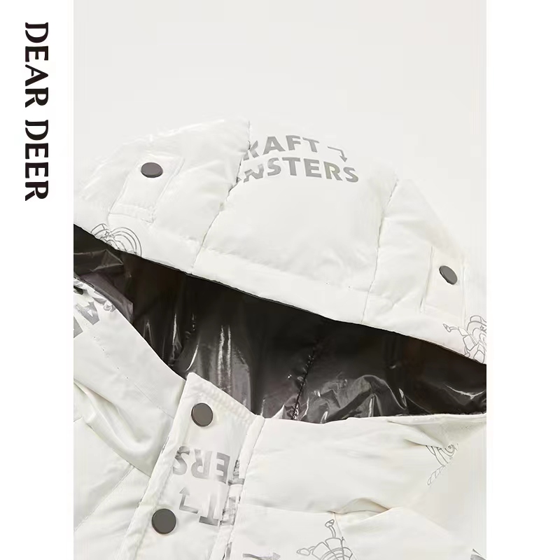 迪迪鹿印花连帽羽绒服