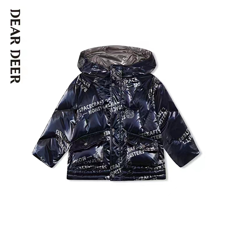 >>迪迪鹿印花连帽羽绒服