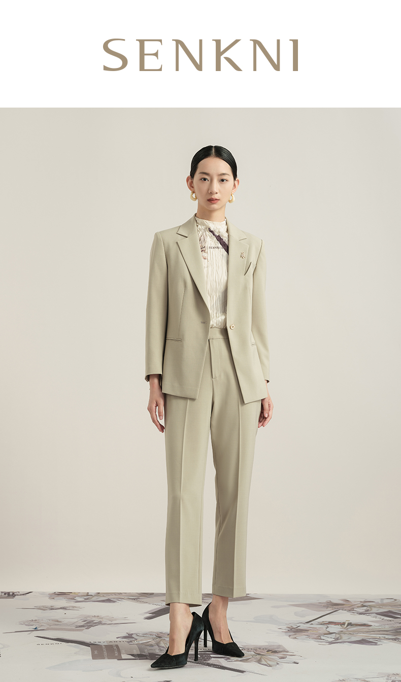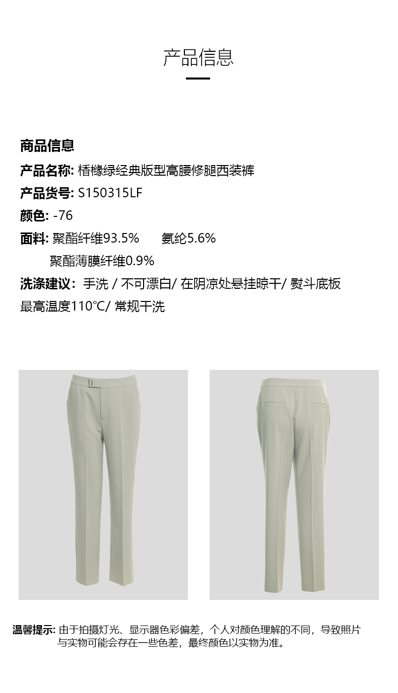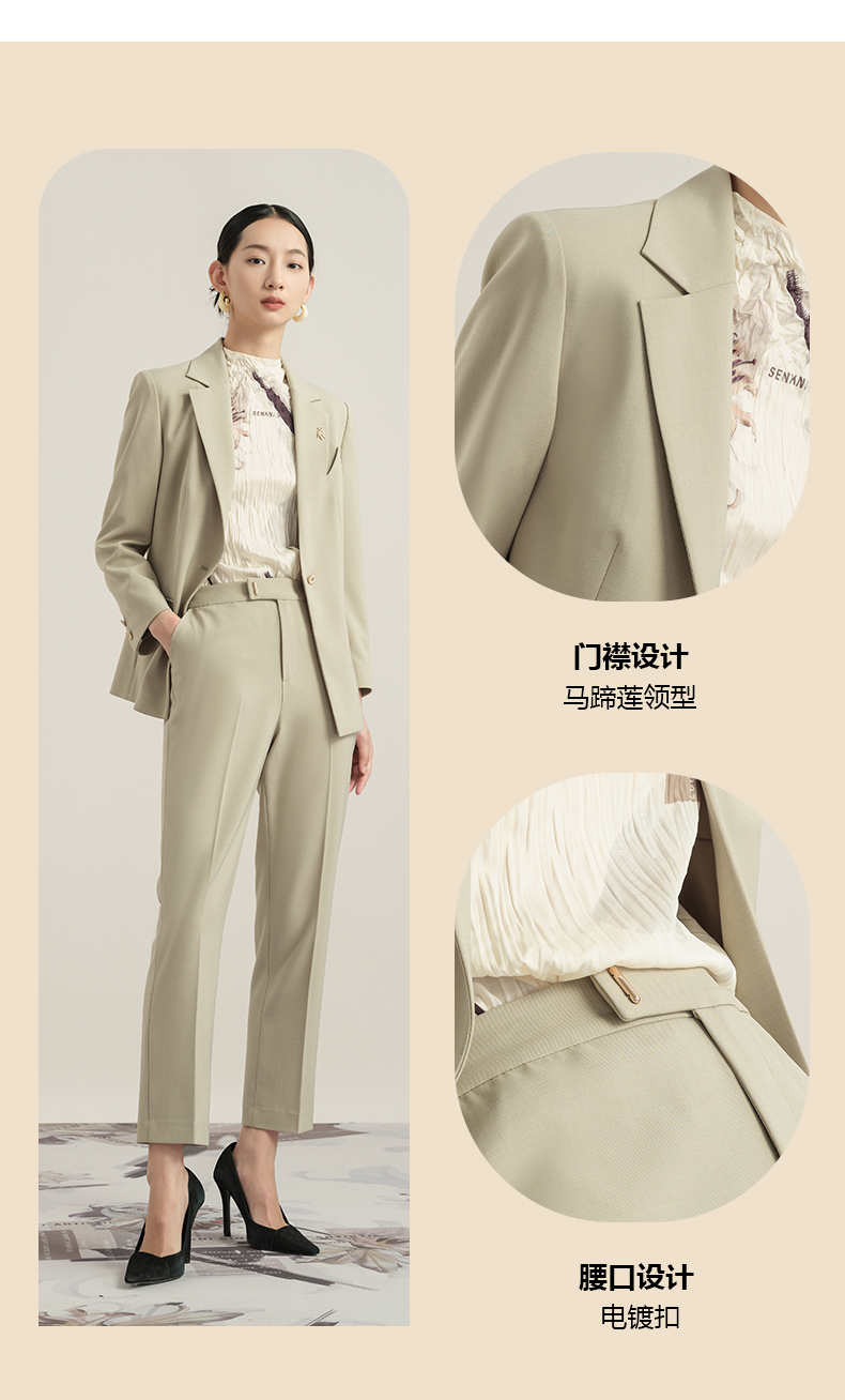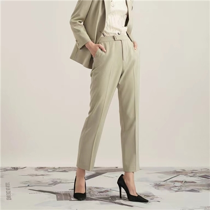 淑女装>>圣可尼2022秋季新品楿橼绿经典版型高腰修腿西装裤