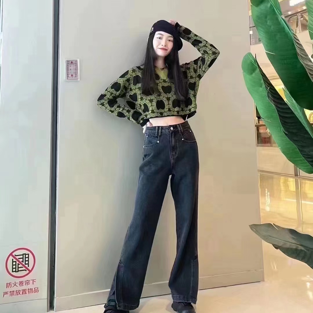 the MSLAN牛仔阔腿裤