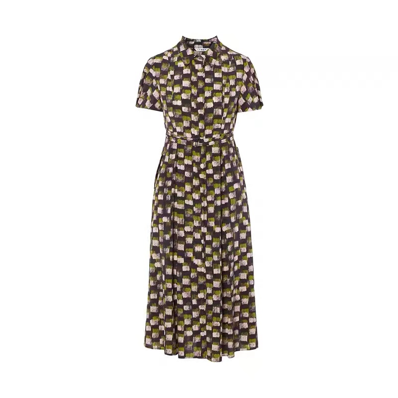 淑女装>>LANCY/朗姿女2022新款衬衫式真丝连衣裙系带收腰裙子
