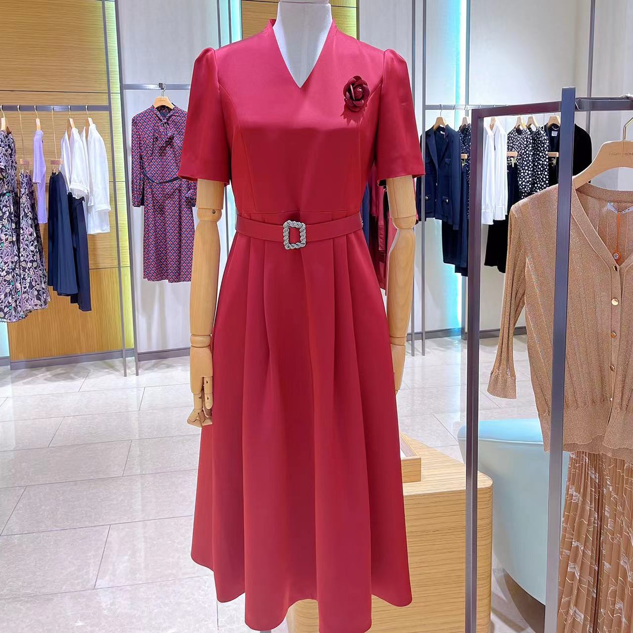 淑女装>>LANCY/朗姿女2022秋冬新款短袖收腰婚庆礼服连衣裙商场同款