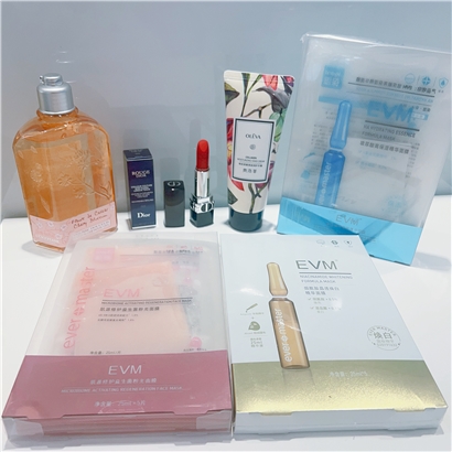 福袋含: 迪奥口红999# 一支 欧舒丹樱花沐浴露250ml 一瓶 EVM肌肤定制面膜3盒(指定款) 奥洛菲护手霜一支