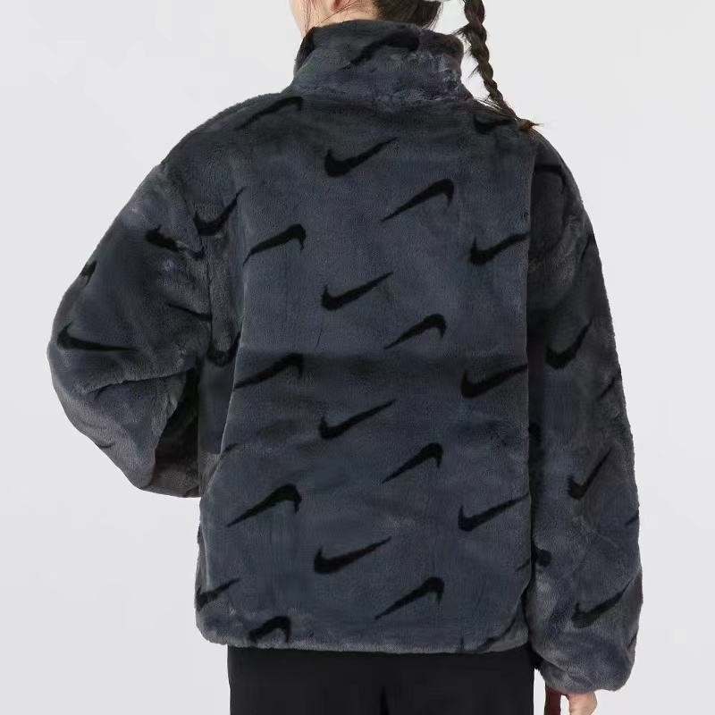 >>Nike耐克外套女2022冬新款人造皮草仿貂绒保暖立领夹克