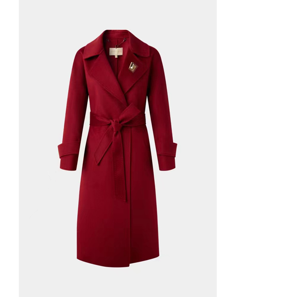 选用优质山羊绒和澳大利亚超细美丽诺羊毛混纺,具有超强的保暖性和柔糯的手感。柔 美低调的覆盆子红代替大红色成为今年秋冬最温暖时髦的红色调,精致的金属拼皮革造型 胸针点缀其中,打造出街造型中最亮眼优雅的存在。