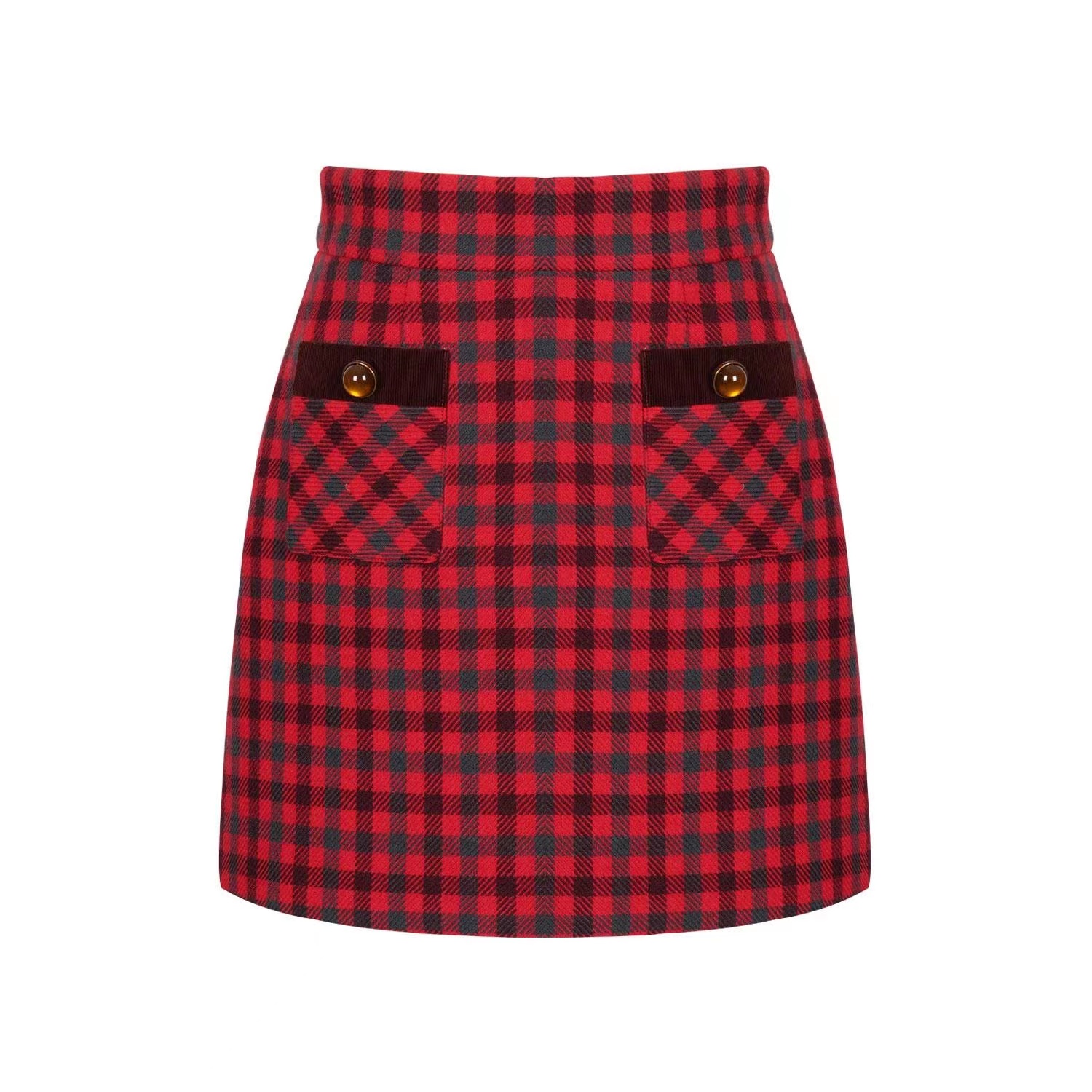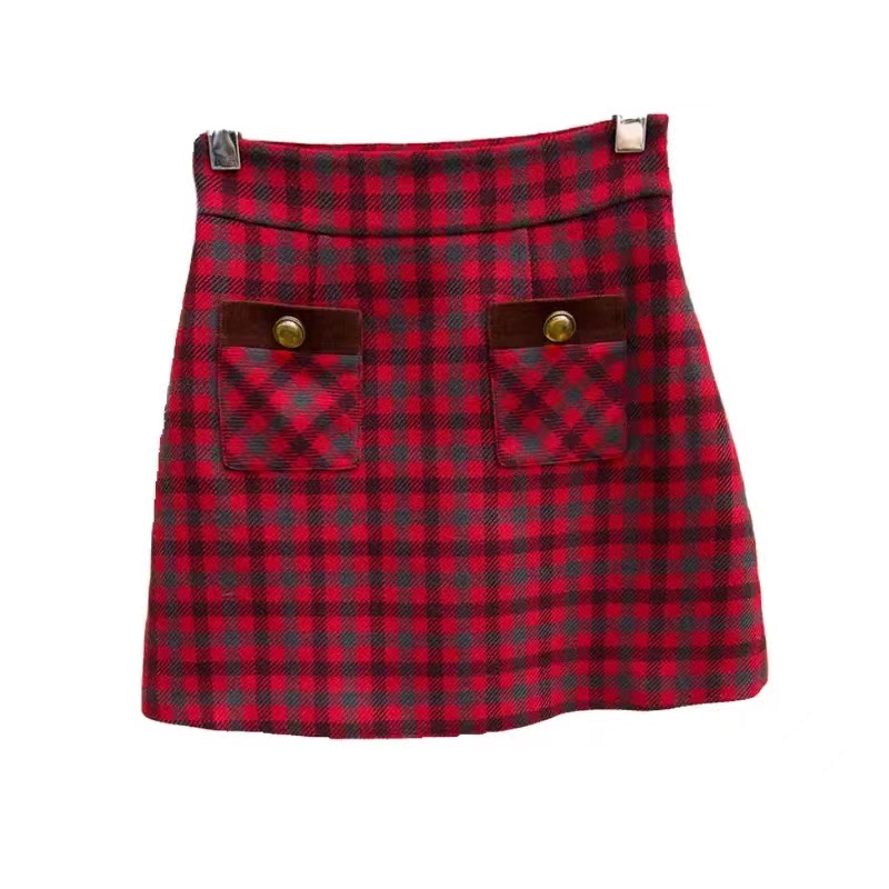 卓雅2022冬新款高腰A字百搭格子短裙半身裙O164503E