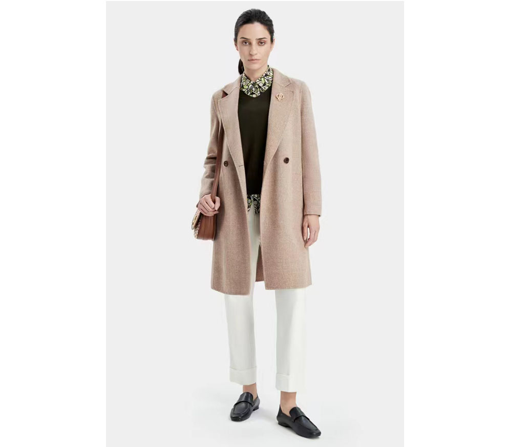 宝姿暖银灰落肩双排扣大衣