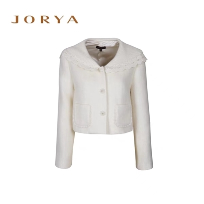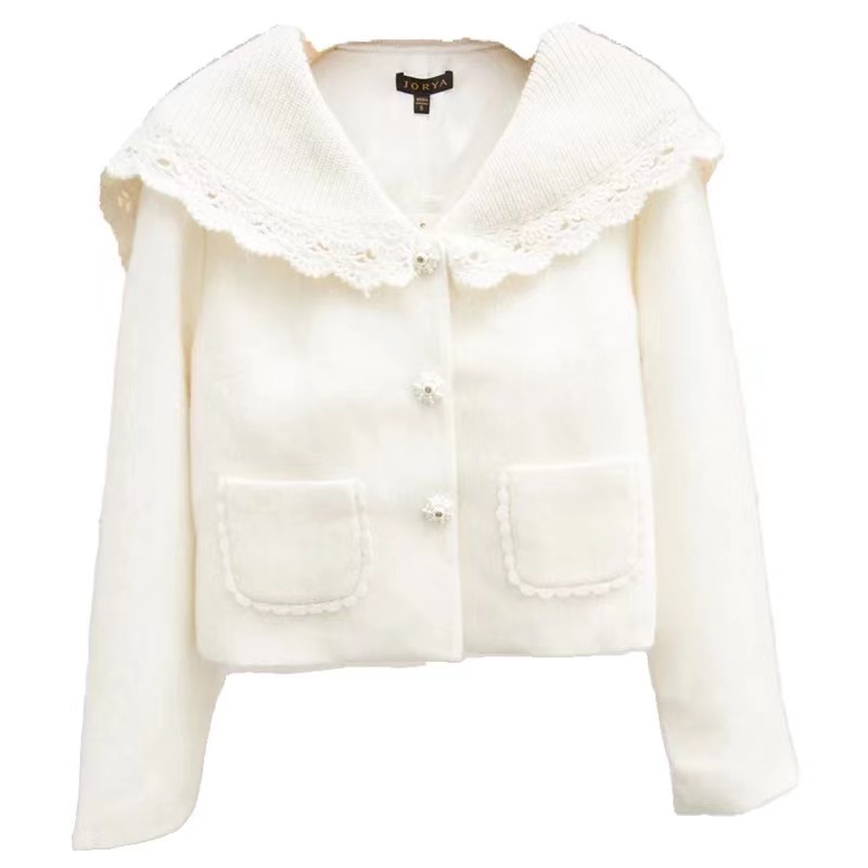 卓雅2022冬新款镂空勾花海军领单排扣短外套O162802B