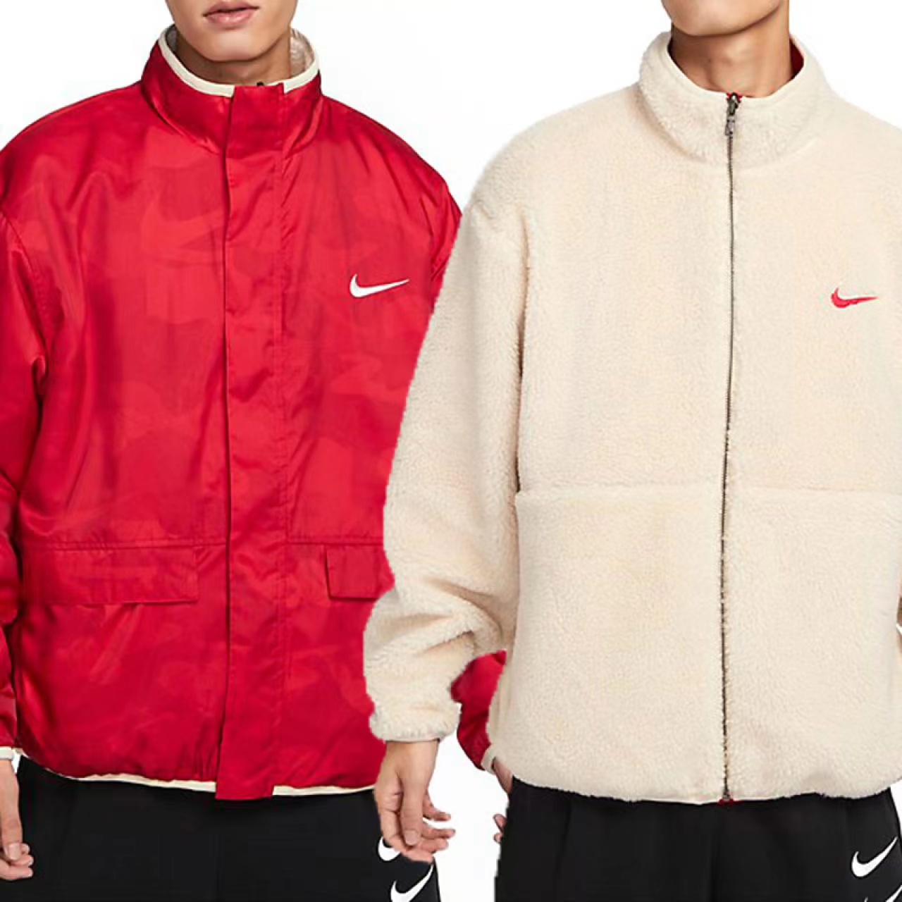 >>耐克红色外套男子2023新年款CNY双面穿羊羔绒夹克