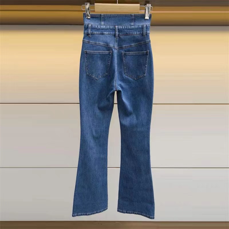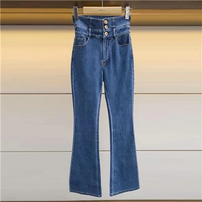JORYA2022秋新款金属三粒扣喇叭牛仔裤