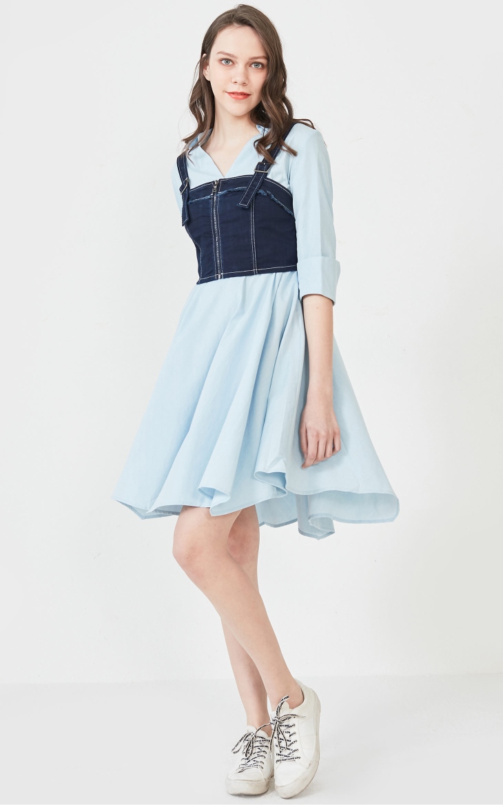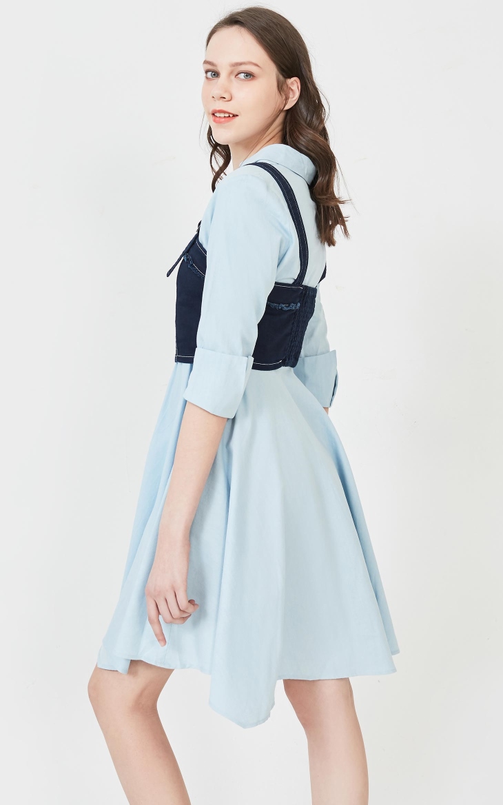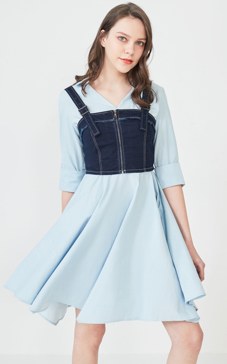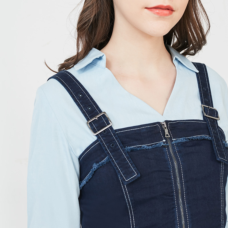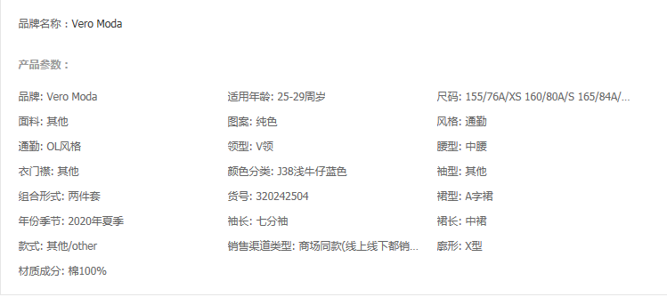 少女装>>Vero Moda2020春夏新款毛边牛仔背心连衣裙两件套女|320242504
