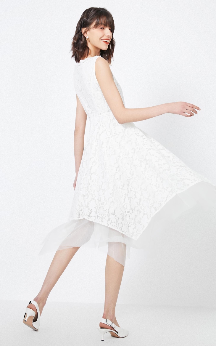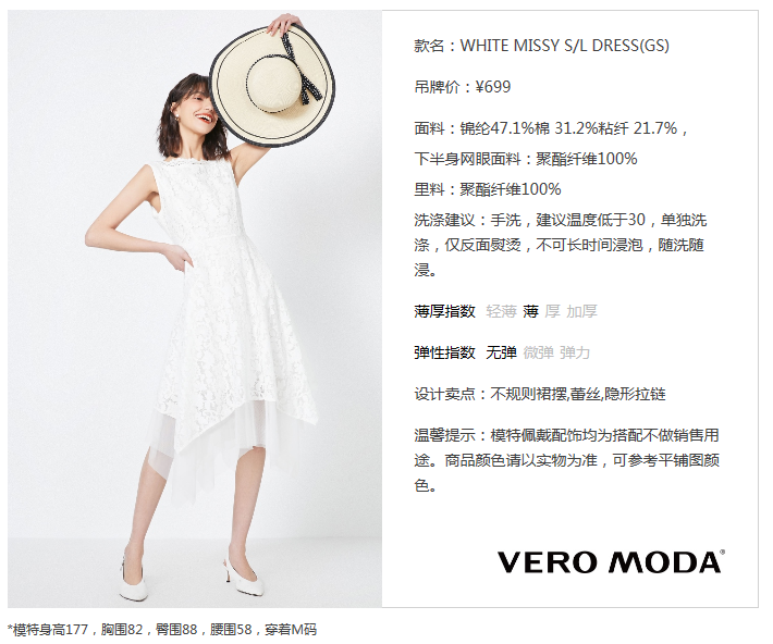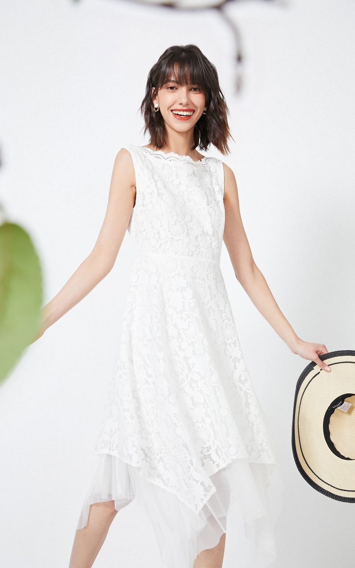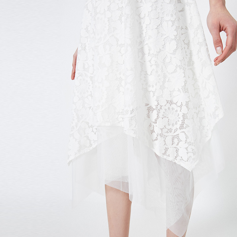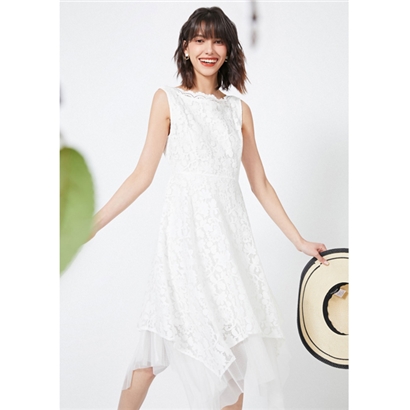 少女装>>Vero Moda2020春夏新款不规则网纱裙摆无袖蕾丝连衣裙|32027A513