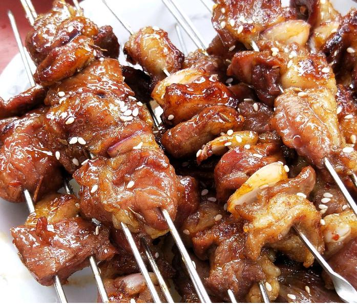 小肥牛肉串约30串,羊肉串约30串,五花肉串20串,可以三选一
