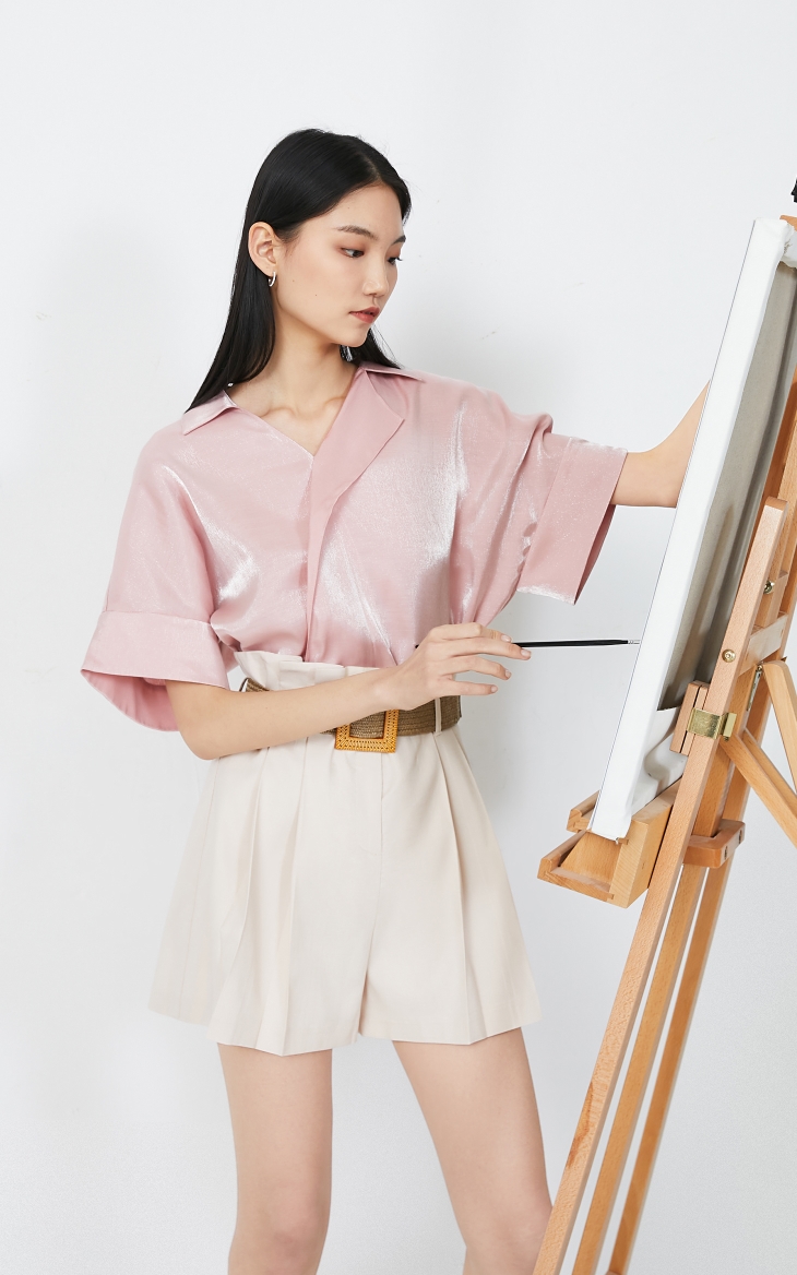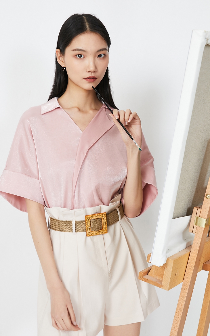 少女装>>Vero Moda2020春夏新款光泽感落肩宽松衬衫上衣|32026X513