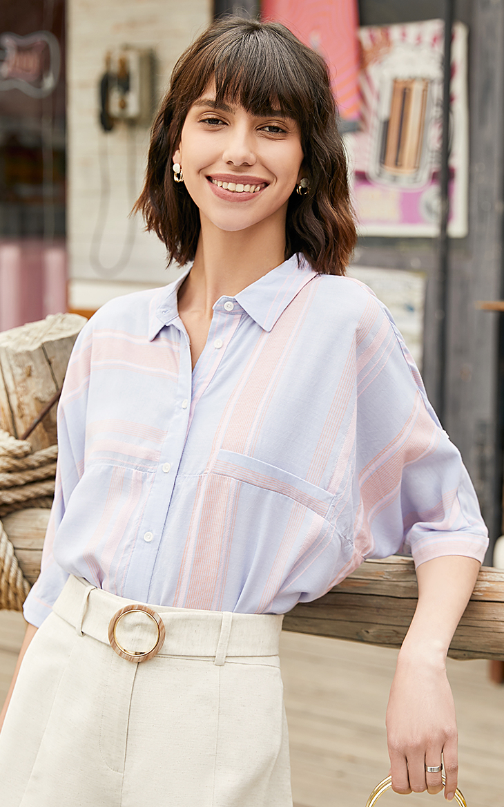 >>Vero Moda小清新不规则条纹印花衬衫女|31936W505