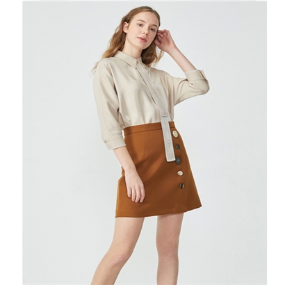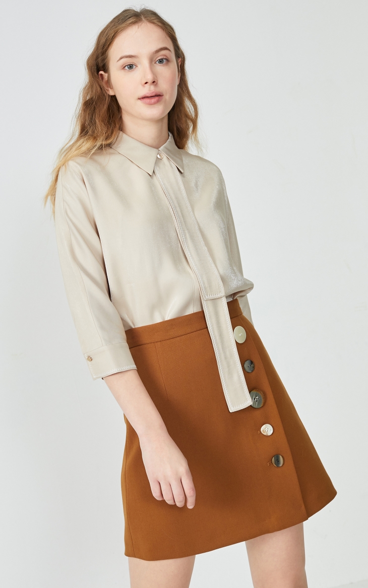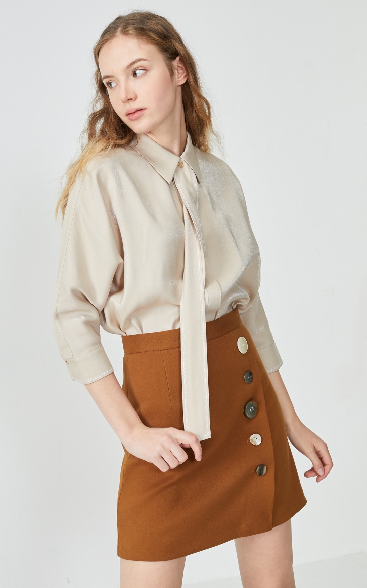 少女装>>Vero Moda2020春夏新款光泽面料领带装饰七分袖衬衫|320131528