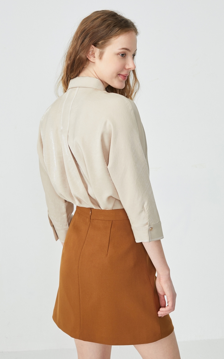 Vero Moda2020春夏新款光泽面料领带装饰七分袖衬衫|320131528