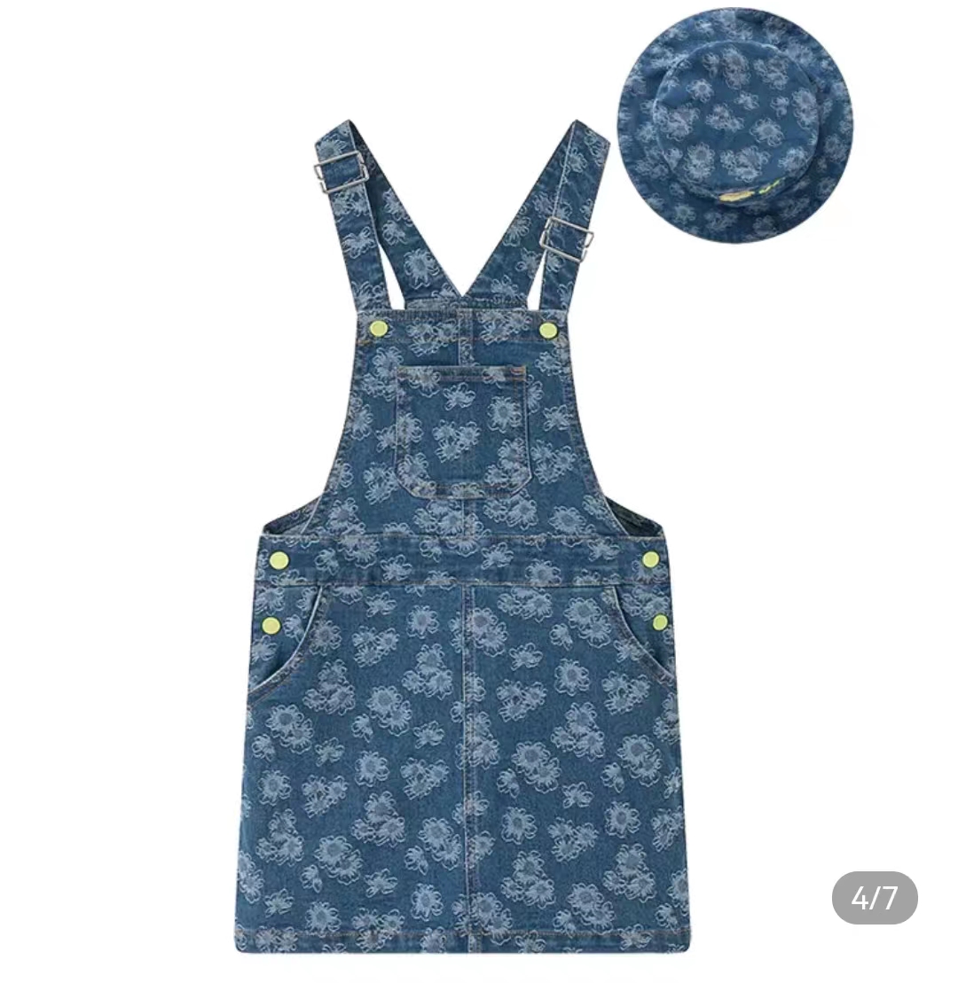 马骑顿女大童夏季满版提花时尚休闲背带裤连衣裙