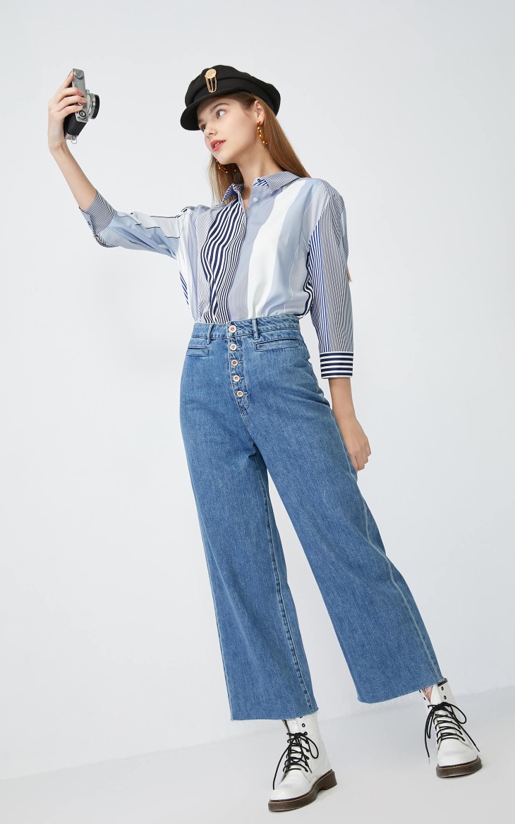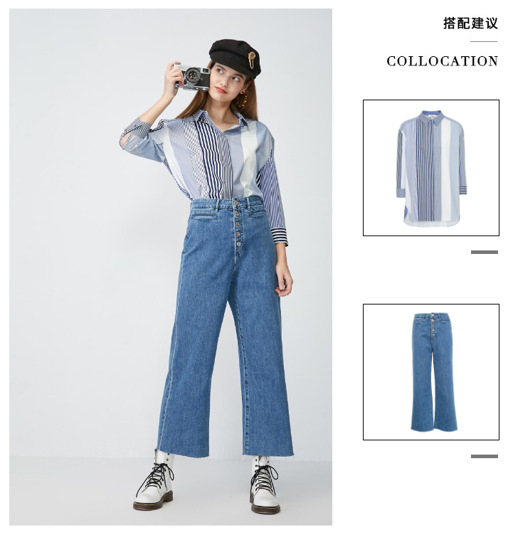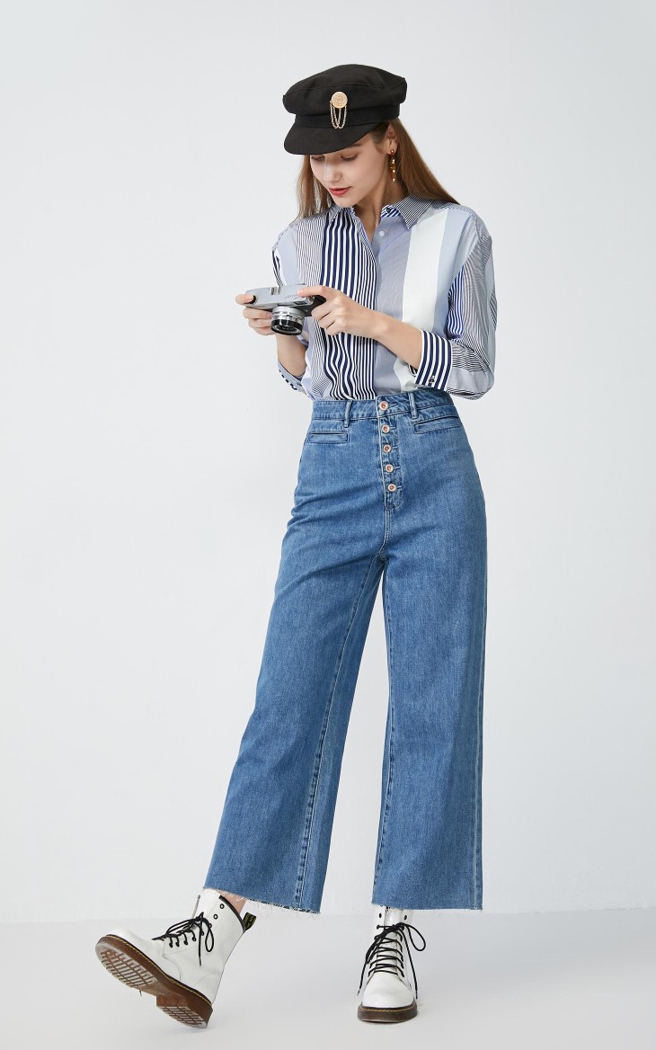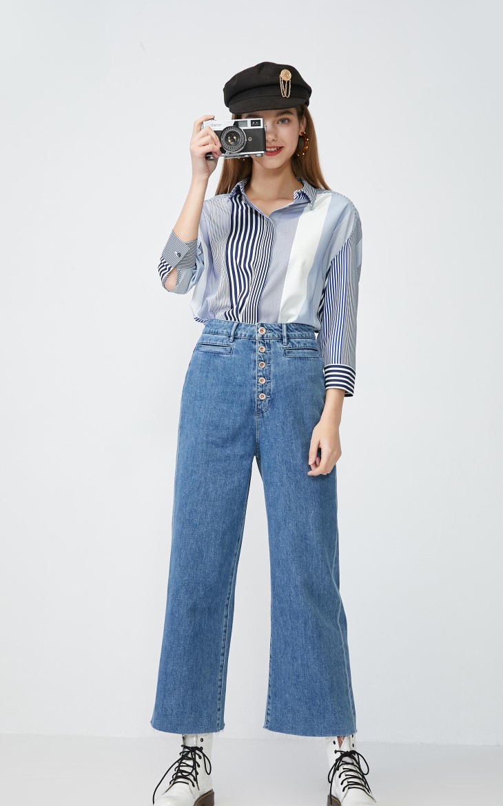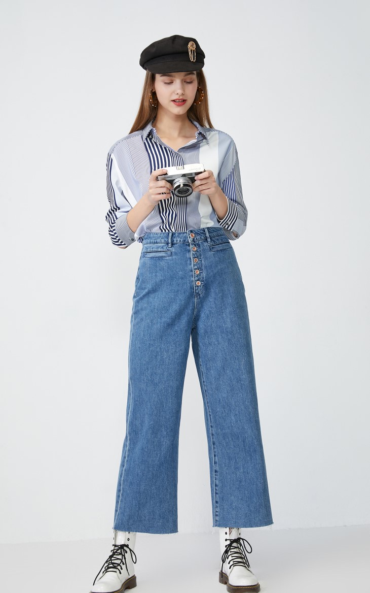少女装>>Vero Moda2020春夏新款工装风九分阔腿全棉牛仔裤女|320149516