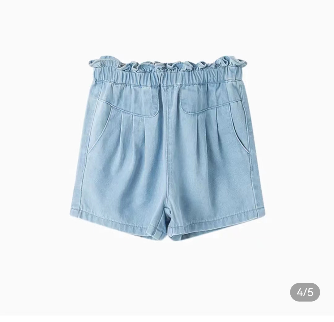 >>马骑顿女小童23夏季甜美荷叶边休闲牛仔裤