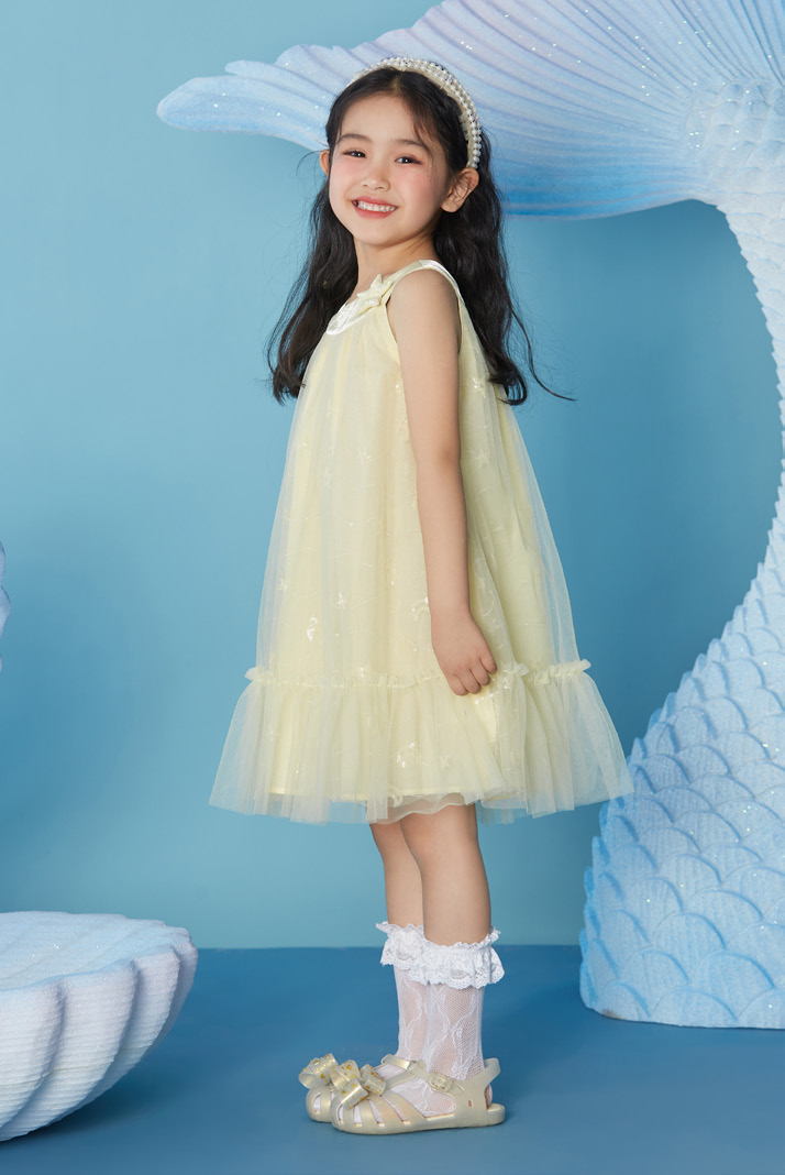马骑顿女大童夏季公主风梦幻网纱无袖连衣裙