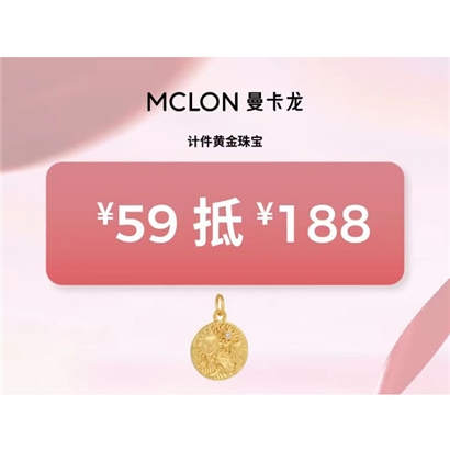 59元抵188元计件黄金(单件满500抵1张,单件满2000抵2张封顶)