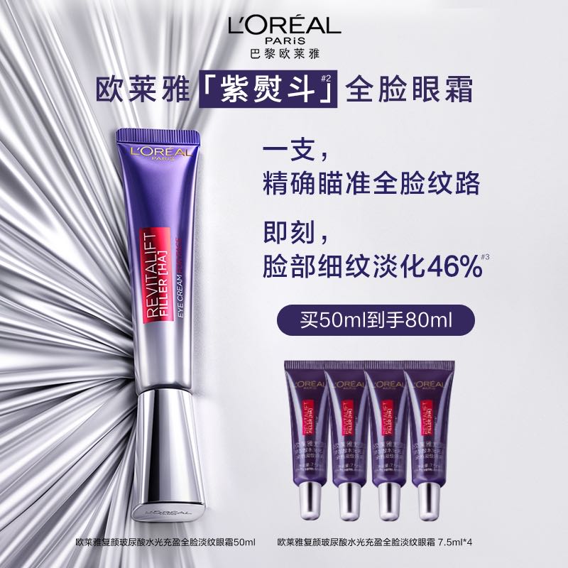 欧莱雅复颜玻尿酸水光充盈全脸淡眼霜50ml(到手80ml)