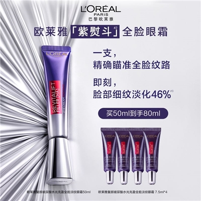 >>欧莱雅复颜玻尿酸水光充盈全脸淡眼霜50ml(到手80ml)