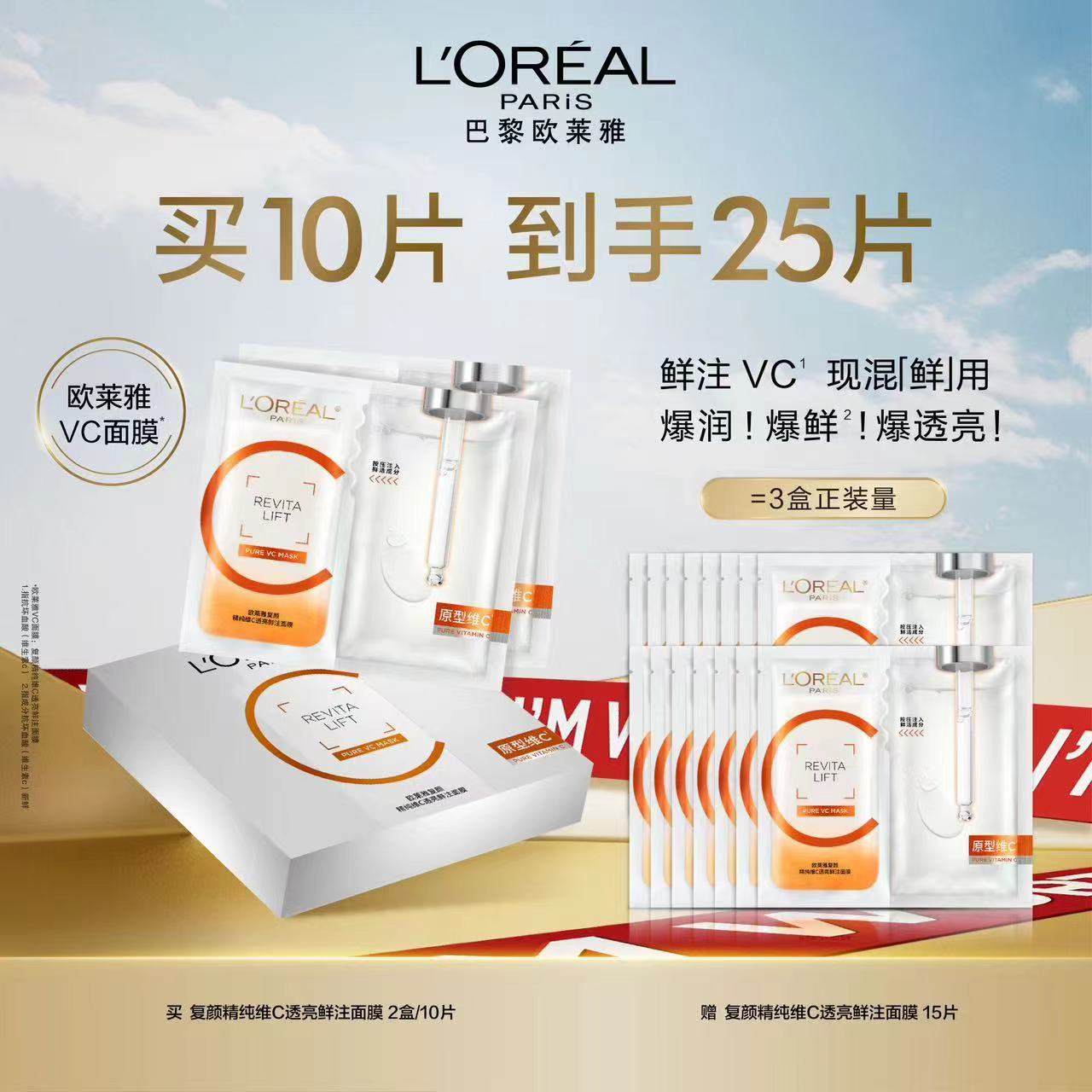 欧莱雅复颜玻尿酸水光充盈导面膜2盒(买10片得25片)相当于4折
