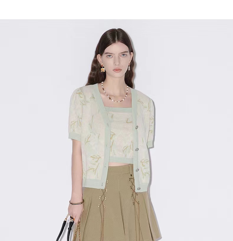 >>the MSLAN23夏南法花园泡泡袖提花毛织开衫