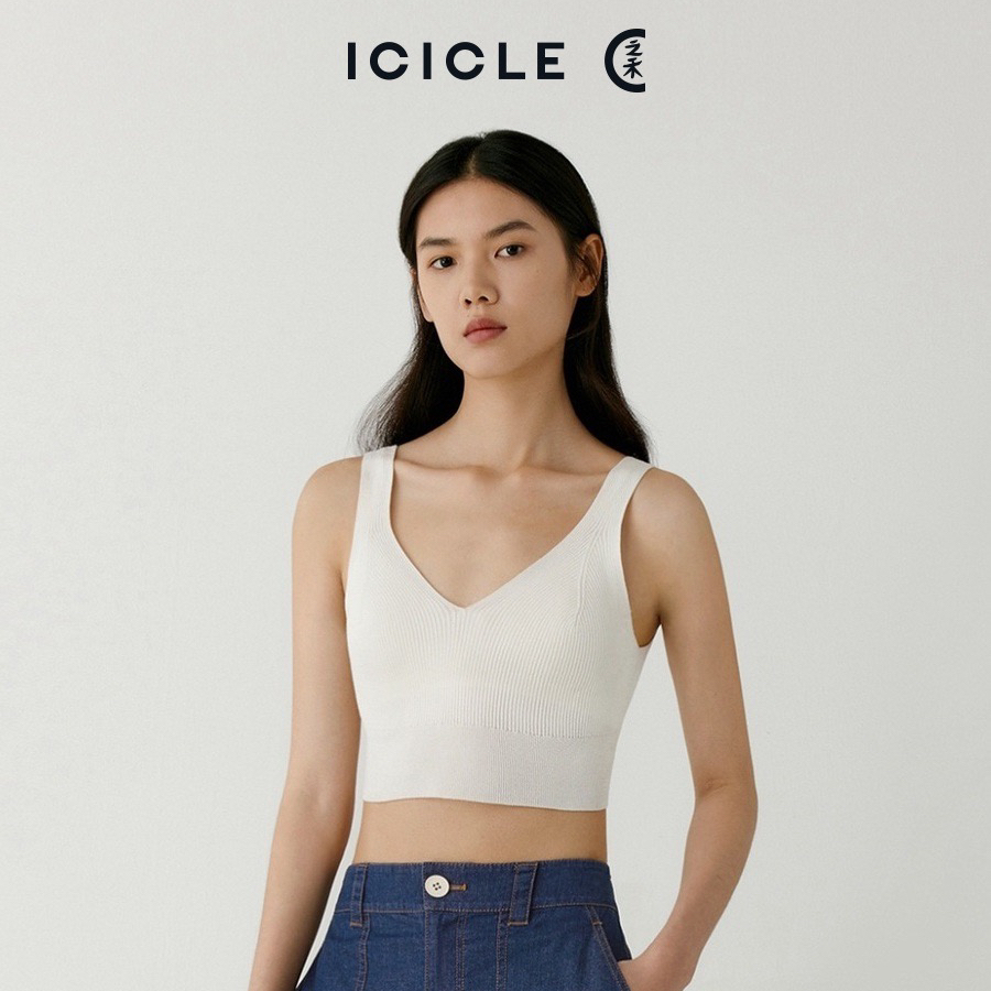 淑女装>>【无缝针织】ICICLE之禾女装2023新款棉弹混纺V领短款背心