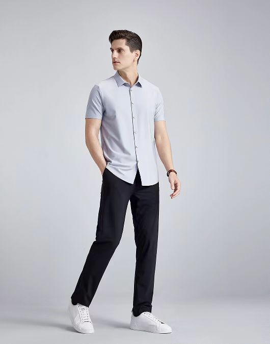 优雅的苍云灰短袖衬衫,面料柔软舒适,透气性好,易打理,实惠的价格你值得拥有