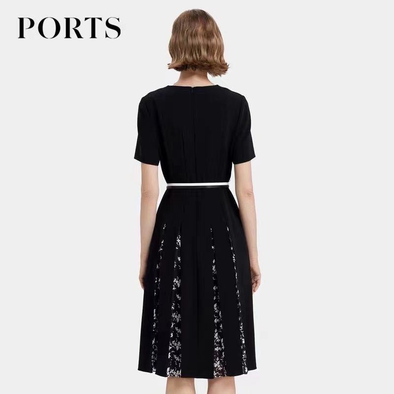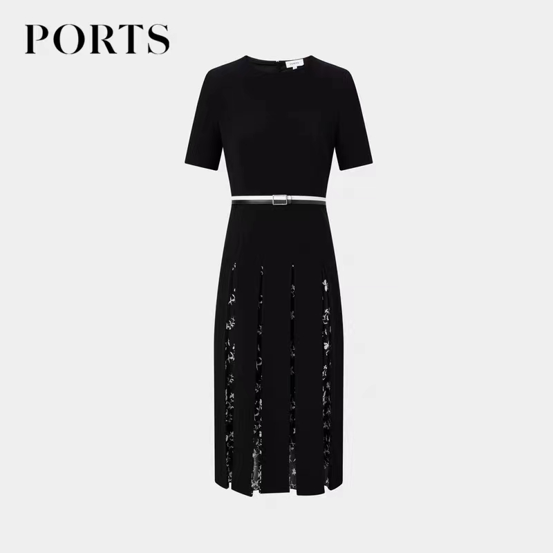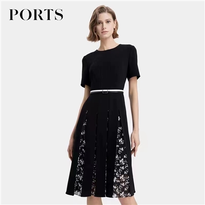 >>宝姿浪漫邂逅拼褶连衣裙