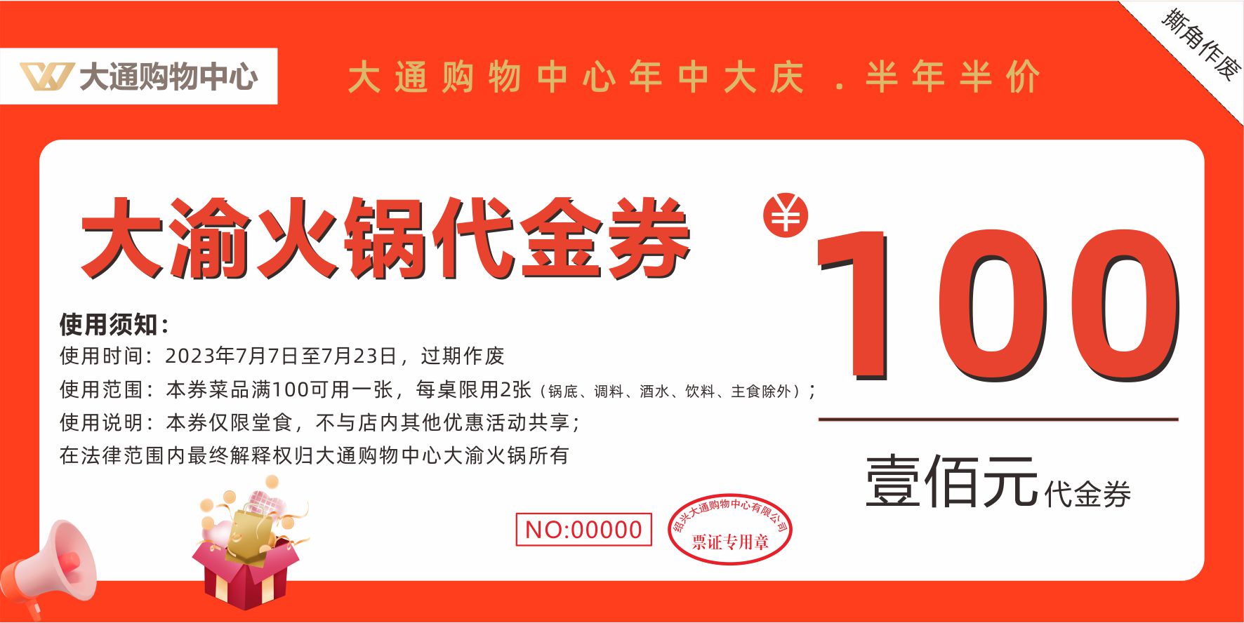 49.9元抢购100元大渝火锅代金券