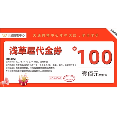核销地点:大通购物中心负一楼服务台