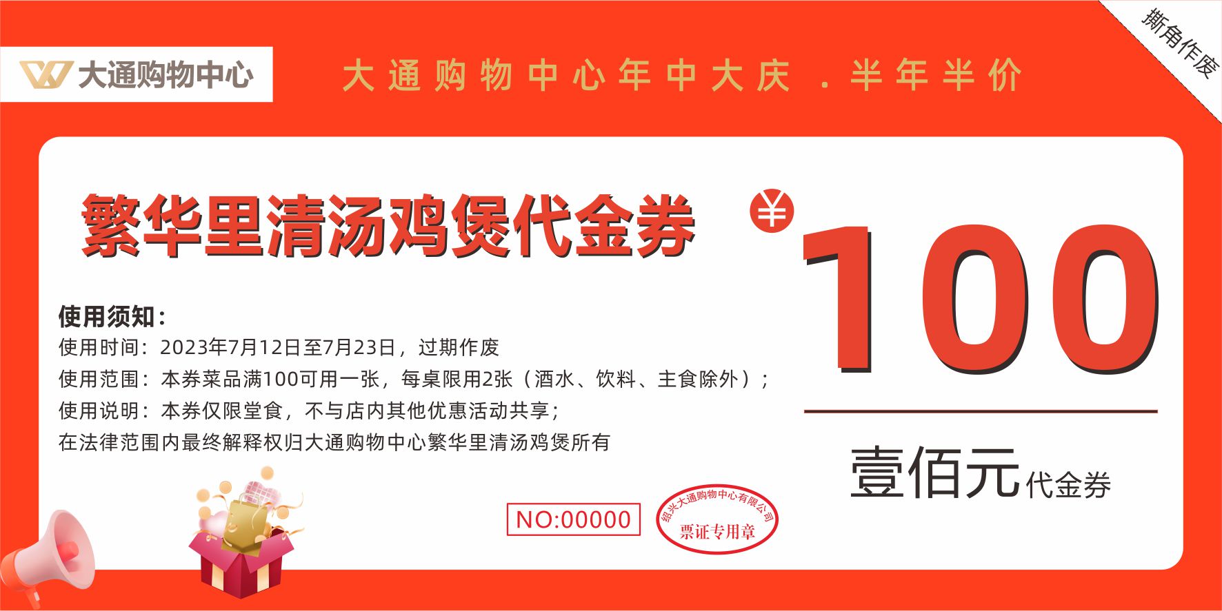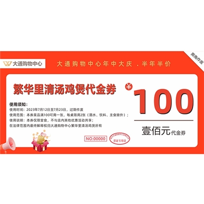 核销地点:大通购物中心负一楼服务台