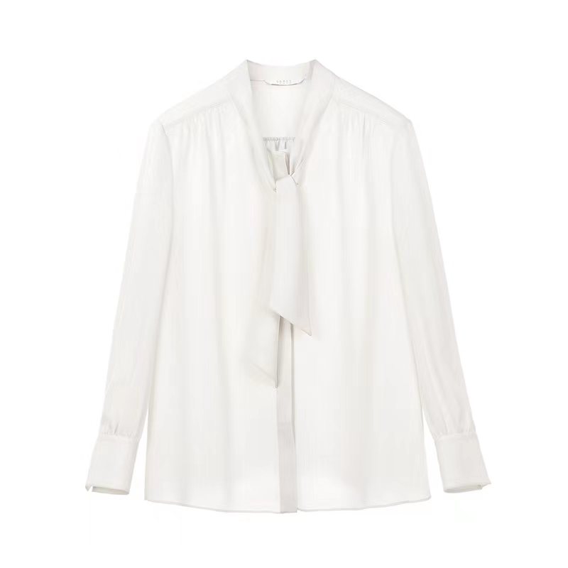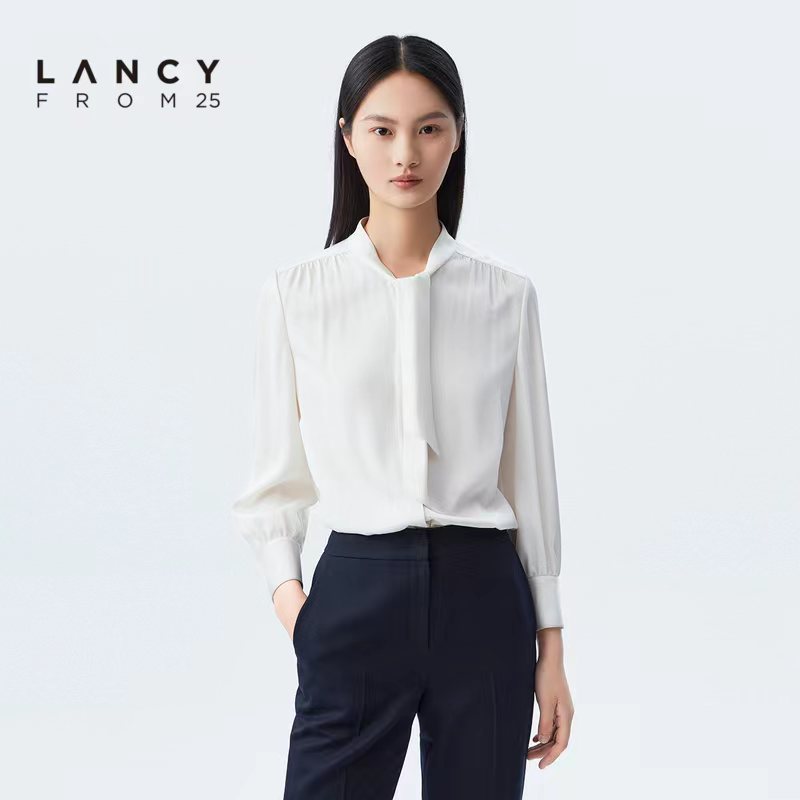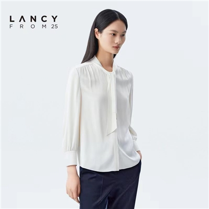 朗姿服饰白色飘带衬衫