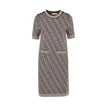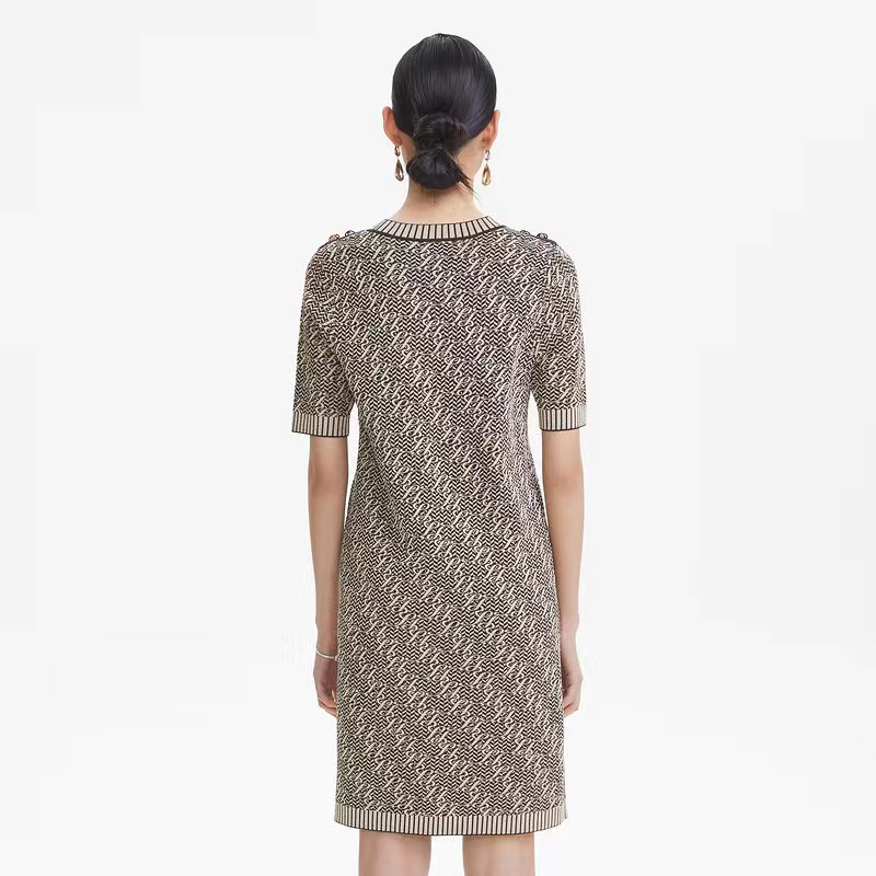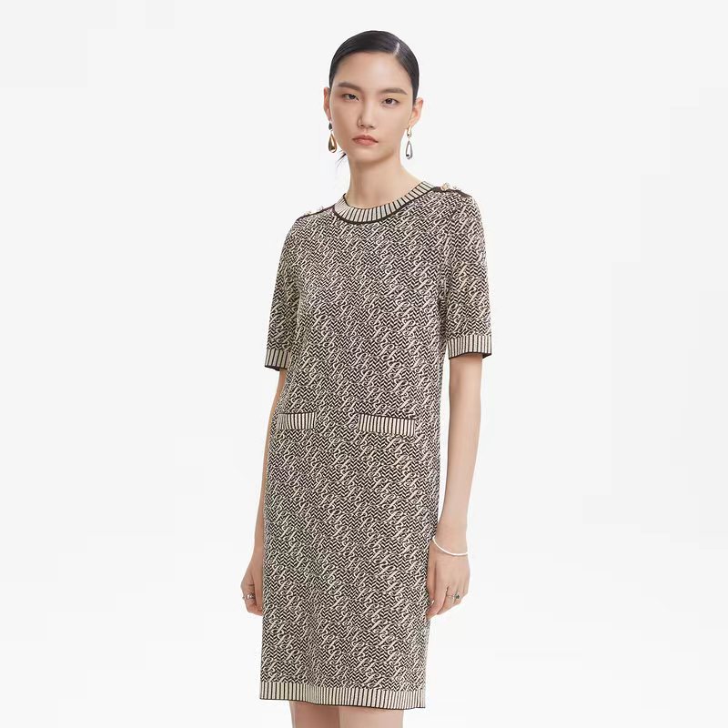 >>朗姿服饰新款收腰显瘦圆领高级感连衣裙