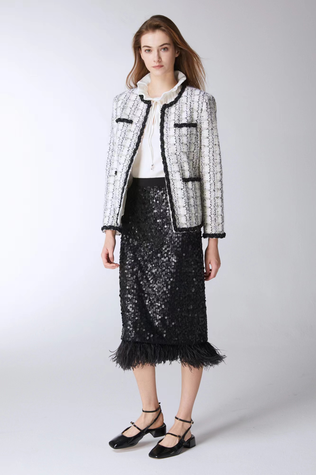 >>宝姿编织边缘花呢夹克