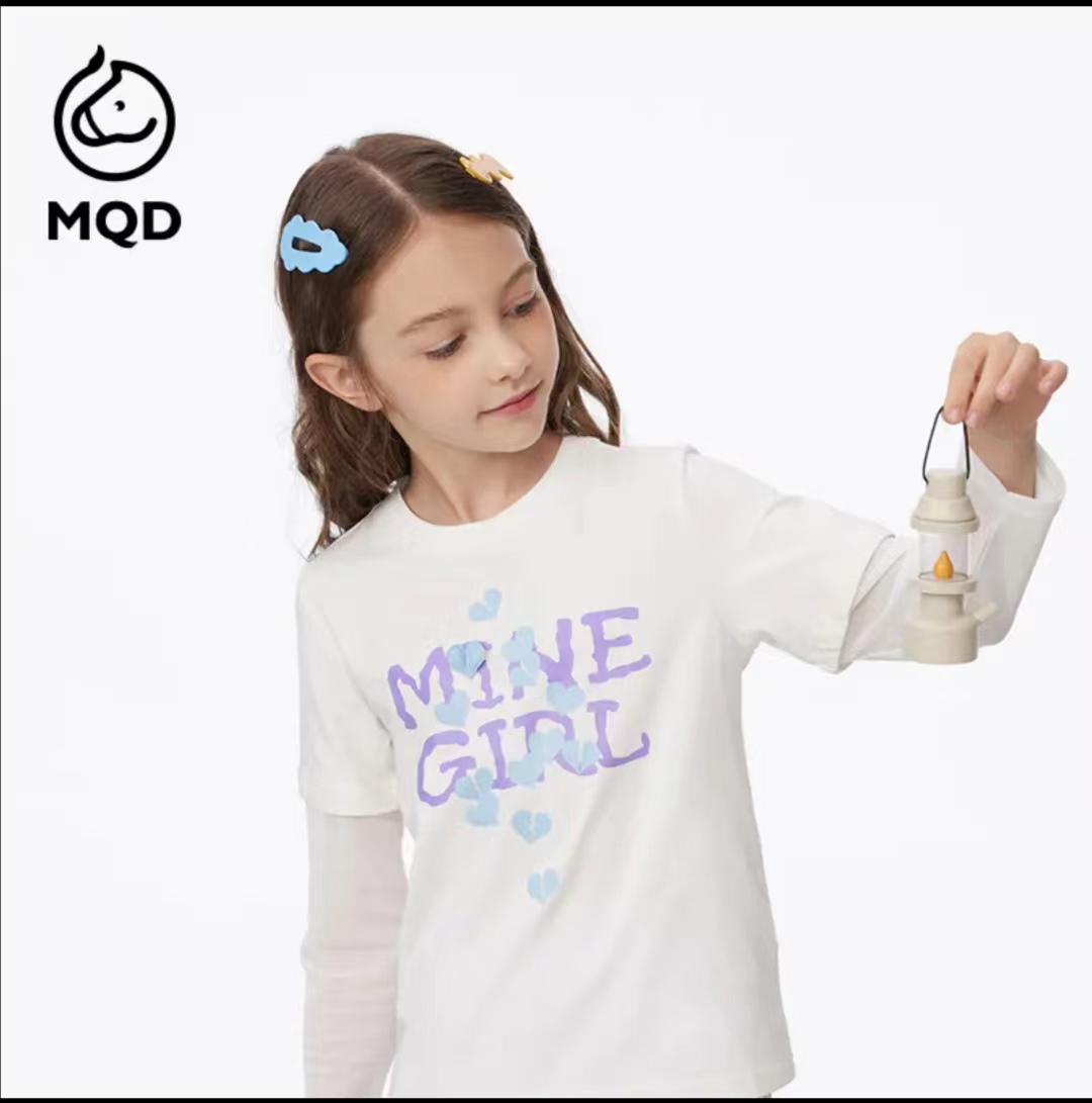 MQD女童23秋季趣味立体印花假两件长袖T恤