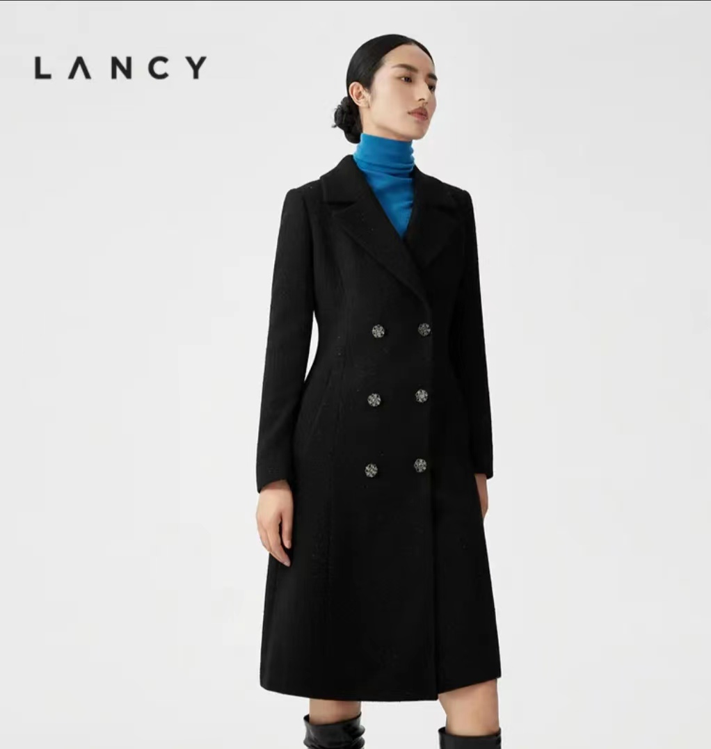 朗姿中长款修身收腰毛呢气质通勤外套