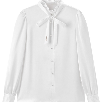 >>乐町秋冬小立领OL风系带白色打底衬衫