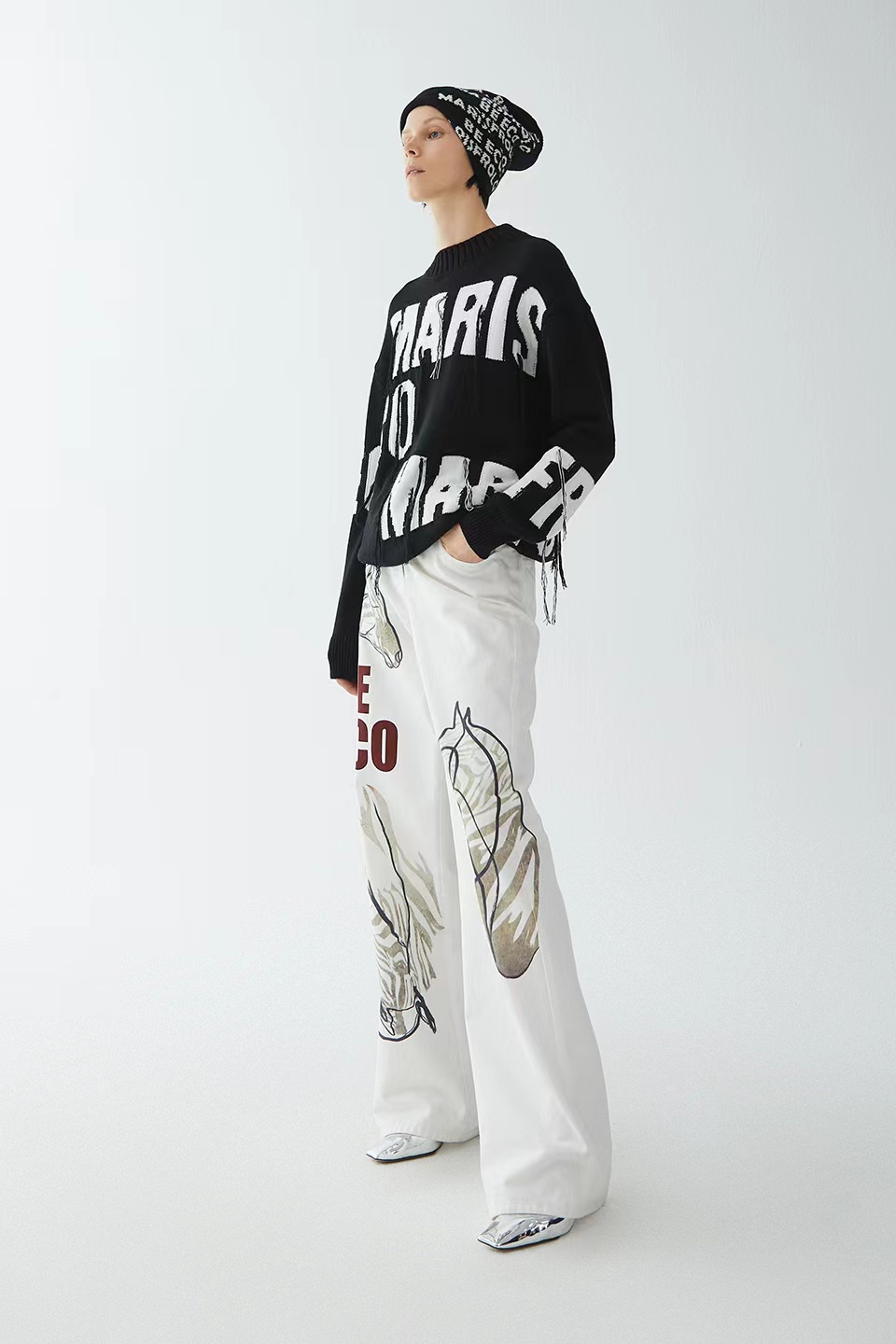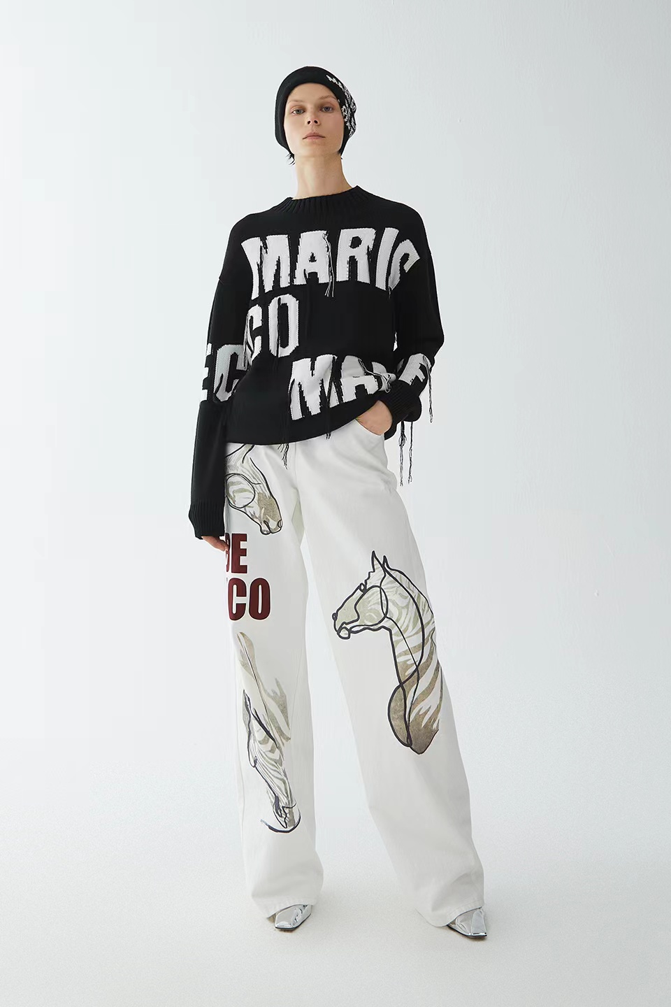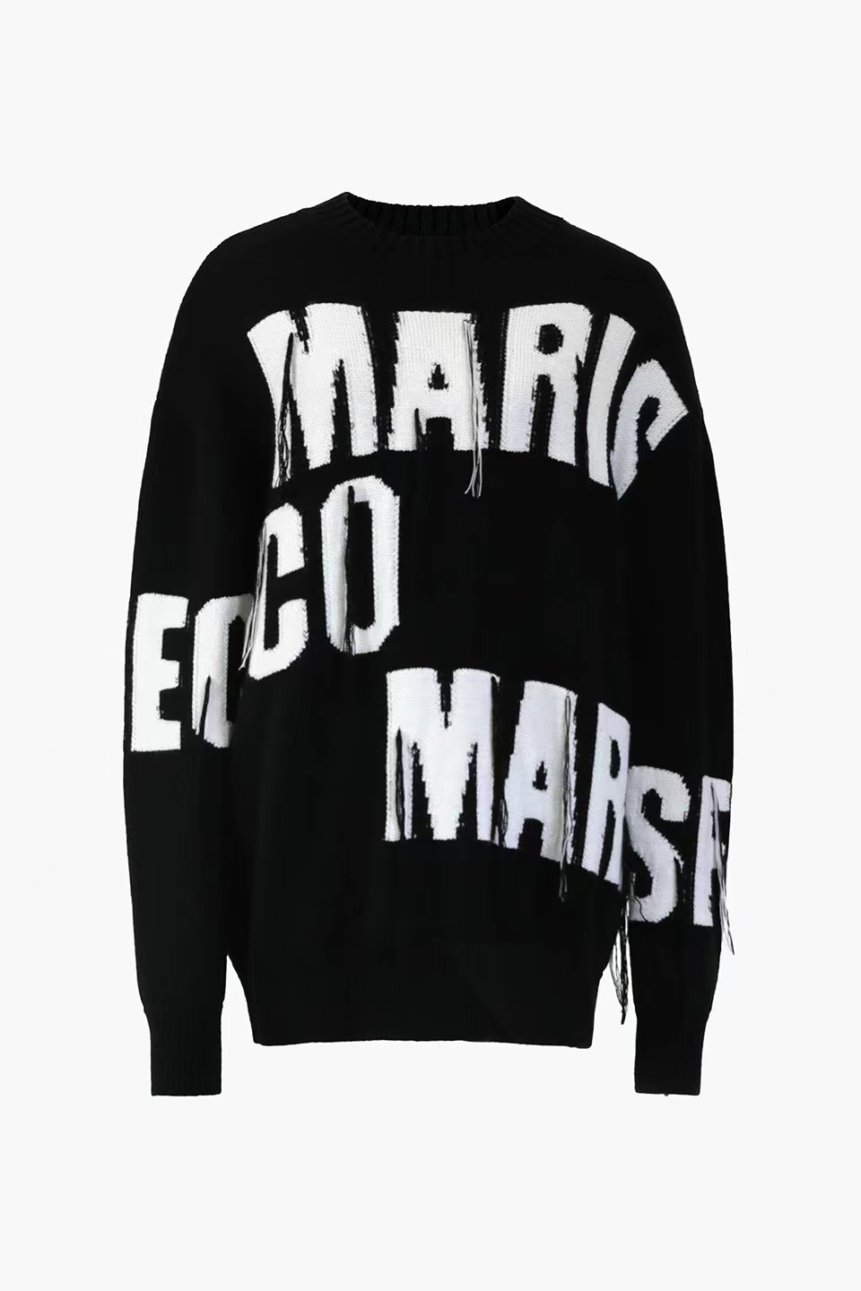 定位流苏黑色粗棒针上衣