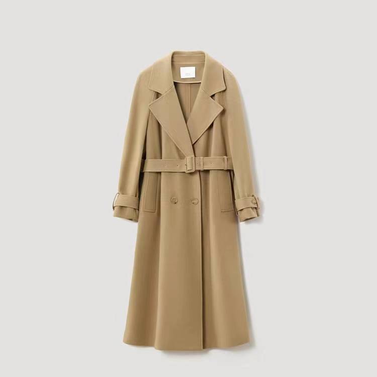 OVV秋冬羊毛平驳领腰带款休闲大衣