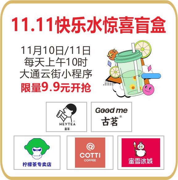 配件>>11.11快乐水惊喜盲盒(喜茶/古茗/嘢打柠/库迪/蜜雪冰城)