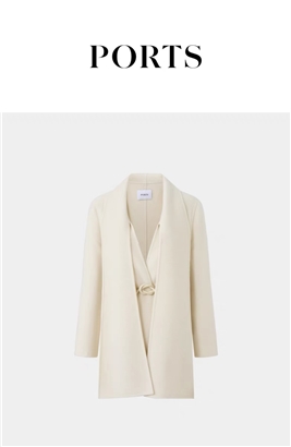 >>时尚设计感奶白色围巾领造型毛呢大衣