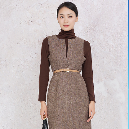 2023圣可尼冬季新品优雅通勤假两件连衣裙