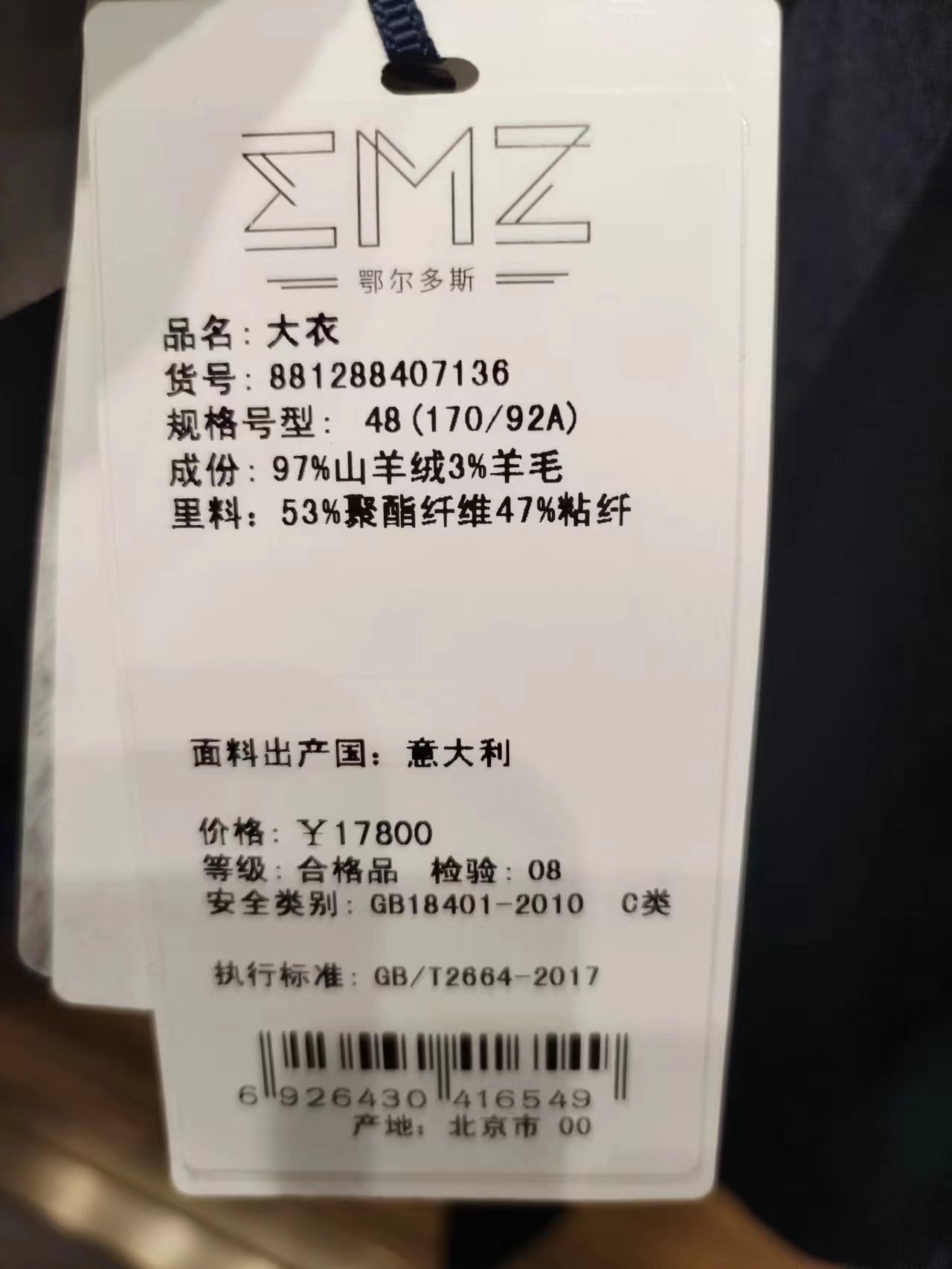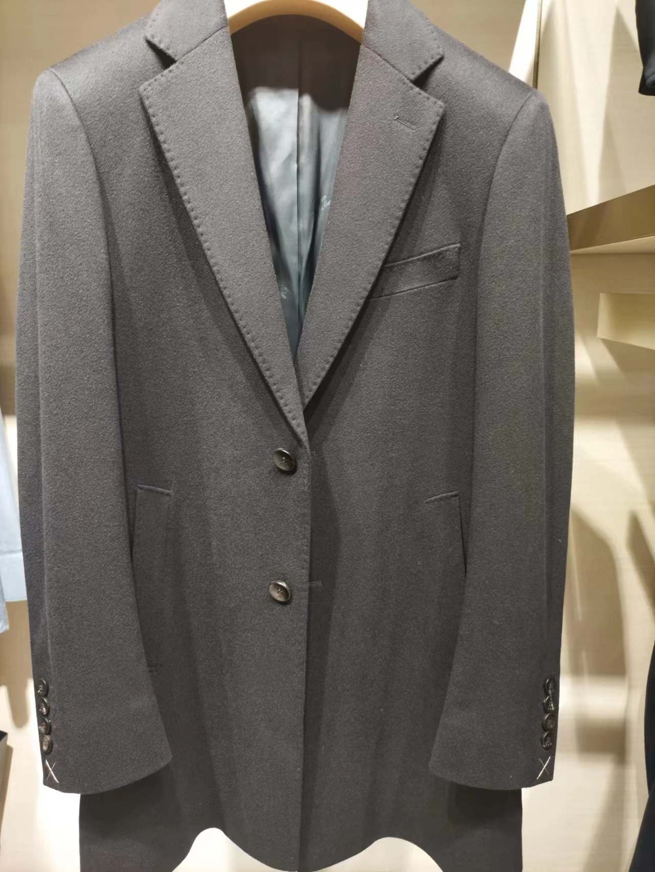 本款羊绒大衣采用意大利进口的LOroPiana,(罗罗皮亚娜)的奢侈羊绒面料,都是高端定制面料,手感柔软丰盈,光泽度极佳,上身无压肩感,穿上我们这件大衣就像行走中的名片,是身份的象征