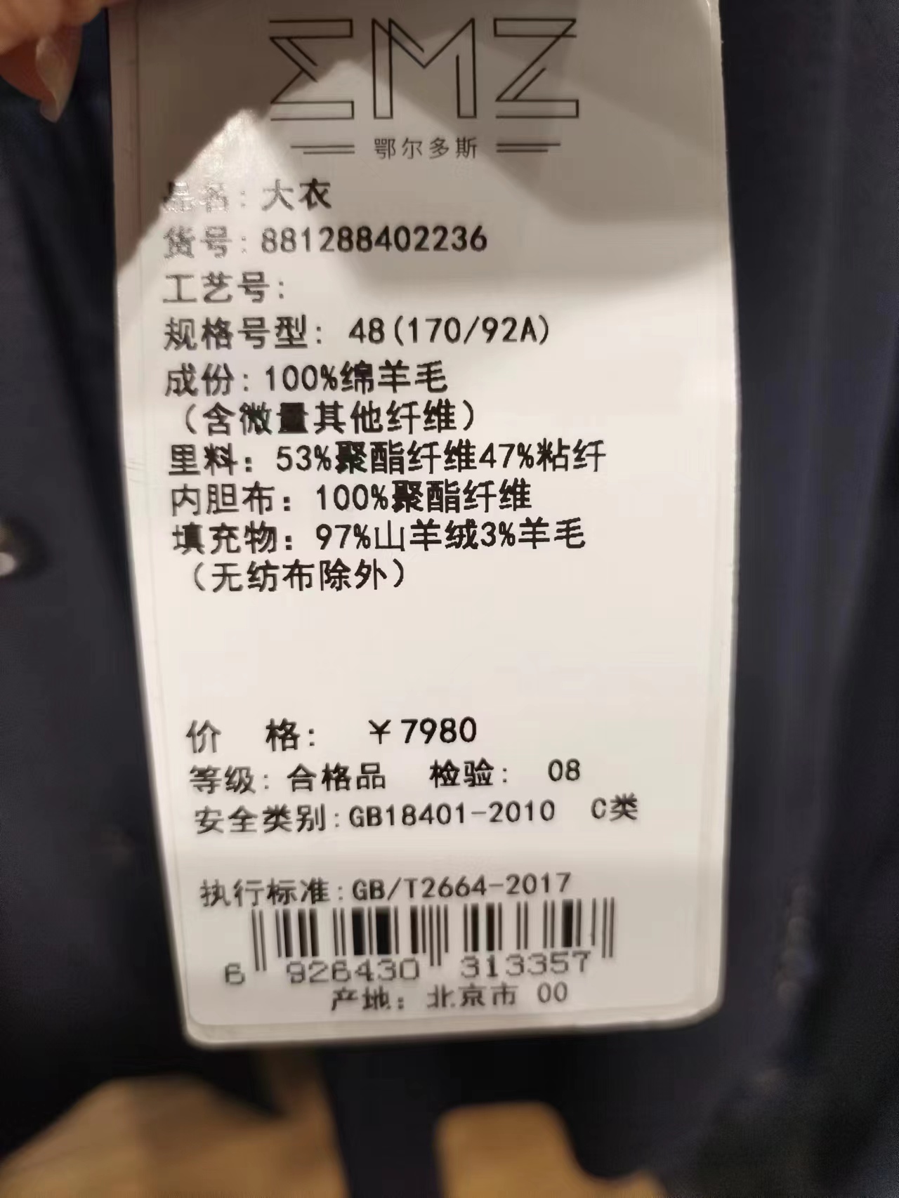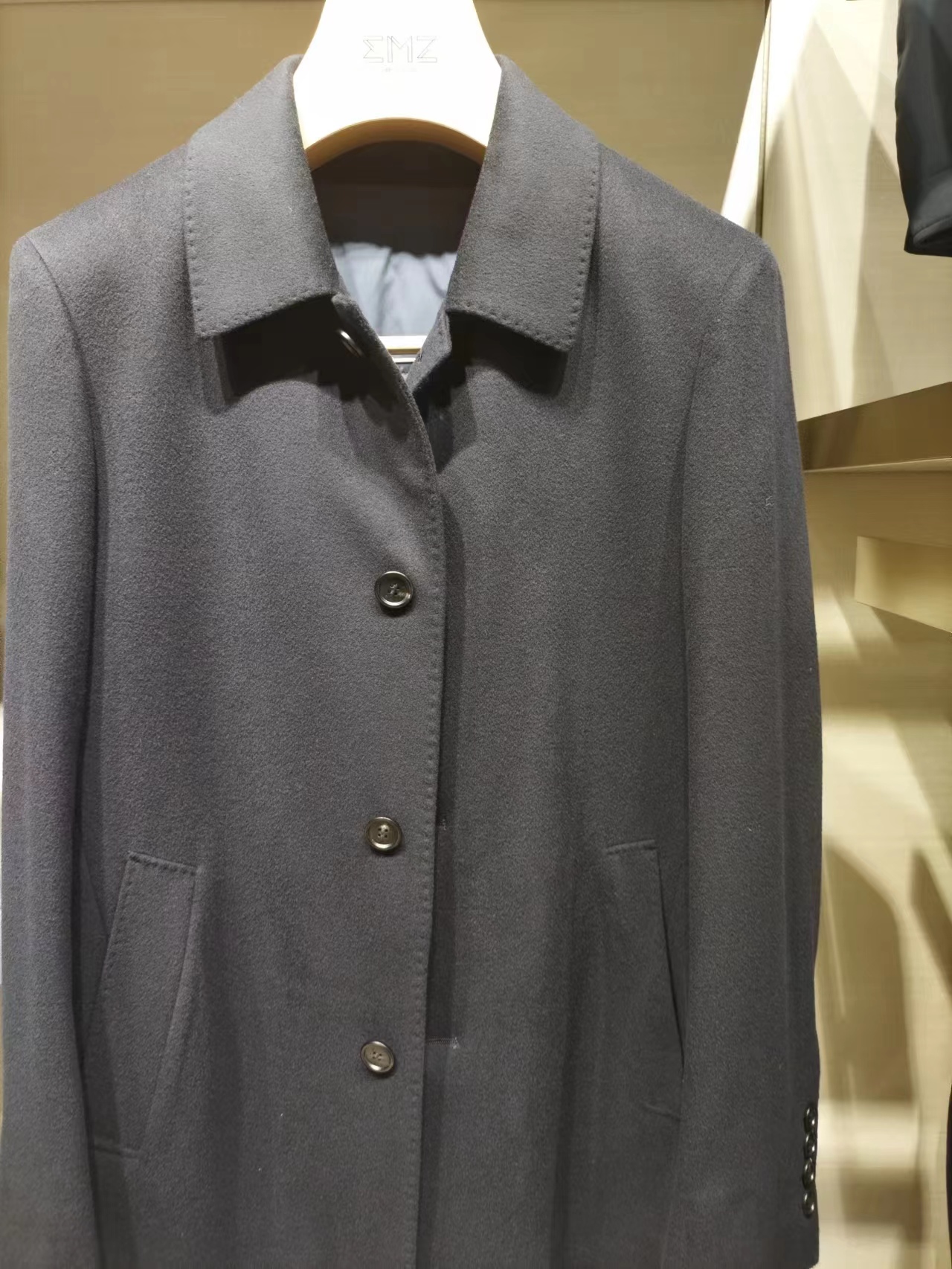 EMX鄂尔多斯羊毛大衣采用100%阿尔巴斯黄金羊毛,内里配备可脱卸软黄金羊绒内胆,保暖性能优秀,穿着时间加长,采用微笑领设计,在商务的同时更具优雅